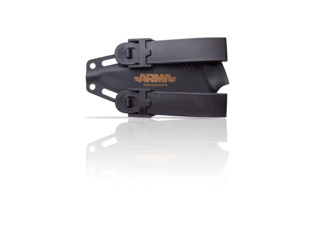 Die Klinge besteht aus schwedischem Sleipner-Stahl und ist mit einer lasergravierten topografischen Karte aus Arma Reforger versehen, inklusive des Logos des Spiels. Der doppelte schwarze micarta-Griff sorgt für einen sicheren Halt, selbst unter schwierigen Bedingungen.