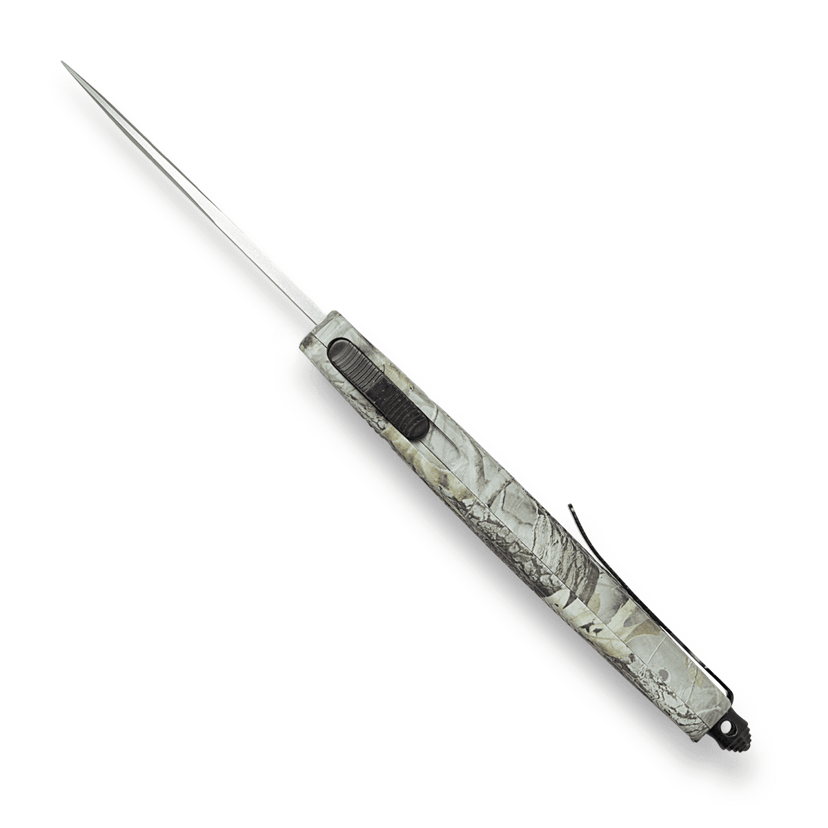 Das CobraTec Medium CTK-1 im grünen Tarnmuster überzeugt mit seiner Klinge aus D2 und dem strukturierten Griff aus hochwertigem Aluminium. Die Tanto-Klinge mit Teilwellenschliff fährt automatisch über einen Knopf aus dem vorderen Griffstück (out the front) heraus. Mit Nylonetui, Glasbrecher und Clip (tip-down/r).