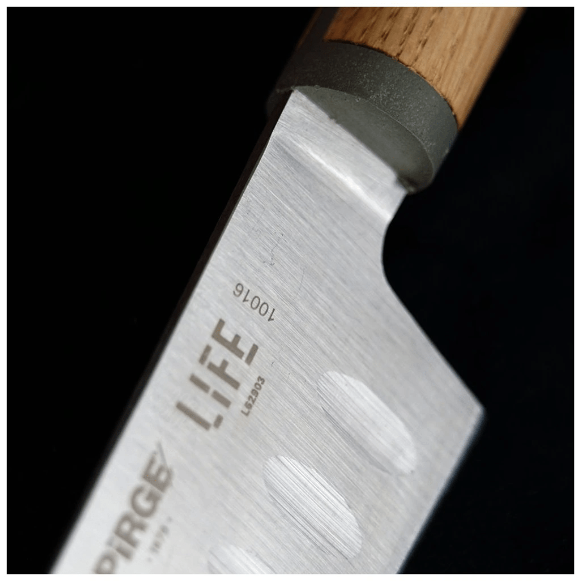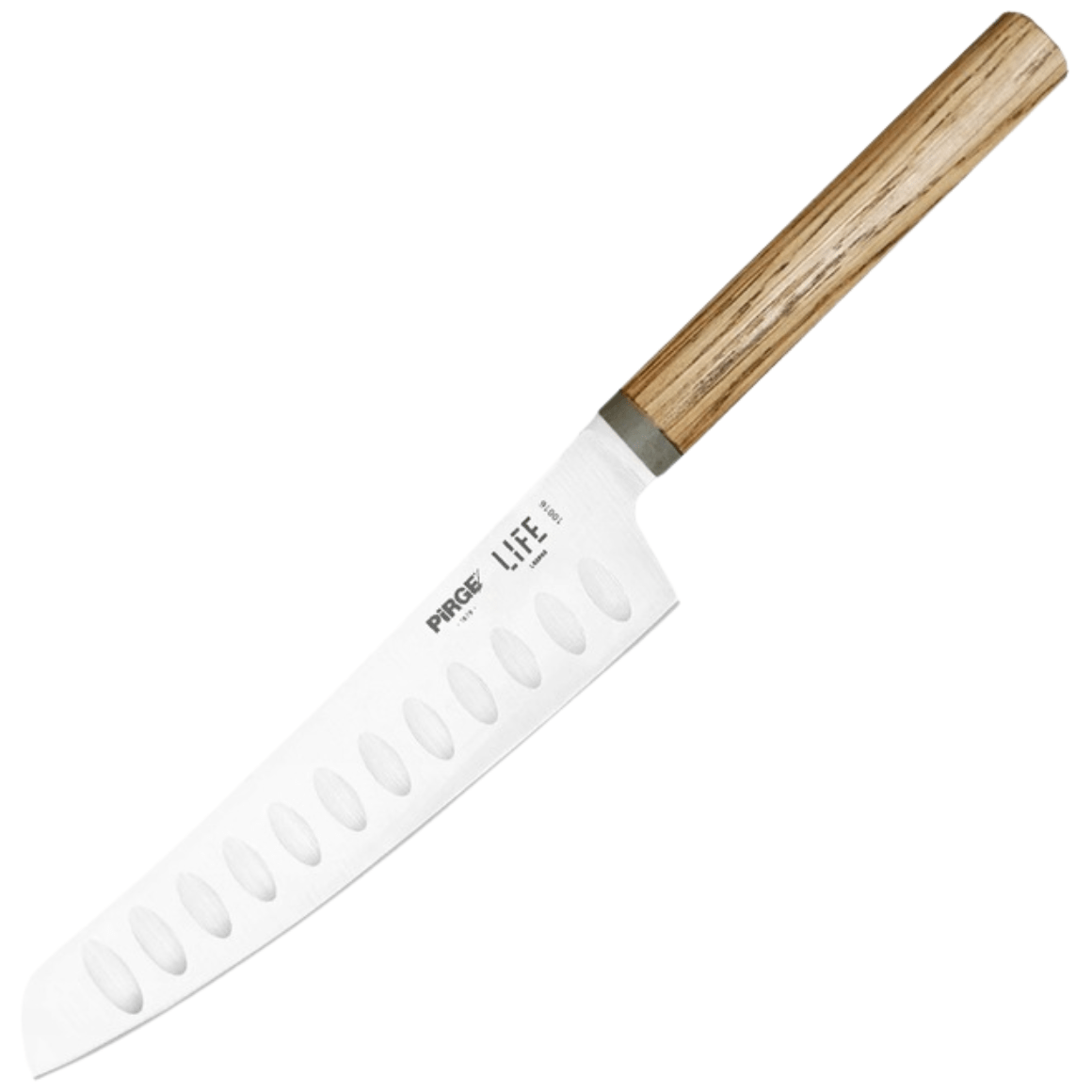 Das Santoku-Messer DELLINGER Pirge LIFE® PIR-10016 ist ein vielseitiges Messer, das seinen Ursprung in Japan hat. Santoku bedeutet "drei Tugenden" – es eignet sich hervorragend zum Schneiden, Zerkleinern und Hacken von Fleisch, Gemüse und Fisch. Das Santoku-Messer ist eine großartige Alternative zu westlichen Kochmessern und die ideale Wahl für alle, die ein vielseitiges und präzises Messer für den täglichen Gebrauch in der Küche suchen.