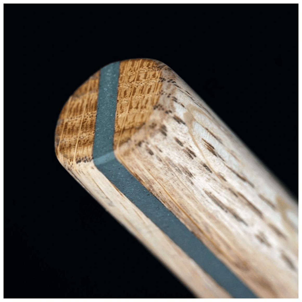 Die ergonomischen ovalen Griffe bestehen aus Polymer, kombiniert mit natürlichen Materialien wie Akazienholz und Olivenkernen. Dieses Verbundmaterial gewährleistet Langlebigkeit, Ergonomie und Umweltfreundlichkeit, da einige Komponenten biologisch abbaubar oder recycelbar sein können.