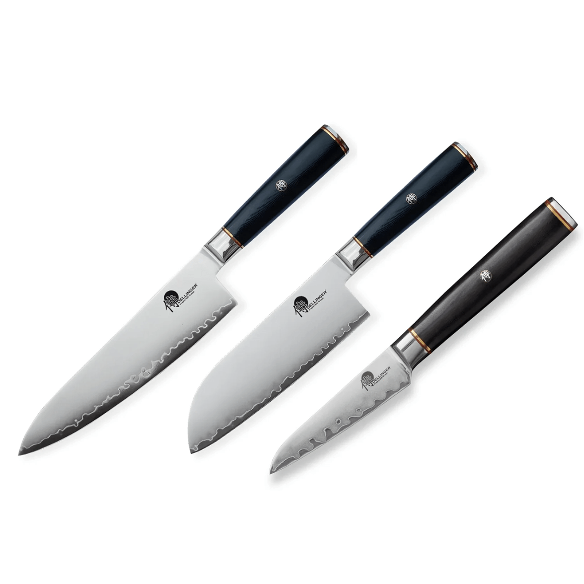Das professionelle Messerset DELLINGER OKAMI 57SADA-SKO ist für maximale Leistung und Sicherheit bei der täglichen Zubereitung von Speisen konzipiert. Es umfasst drei unverzichtbare Messer für jeden Koch oder Metzger: das Kochmesser (205 mm), das Santokumesser (180 mm) und das Schälmesser (90 mm), alle präsentiert in einer Geschenkbox.