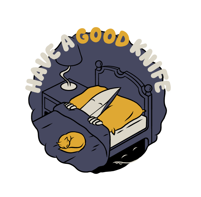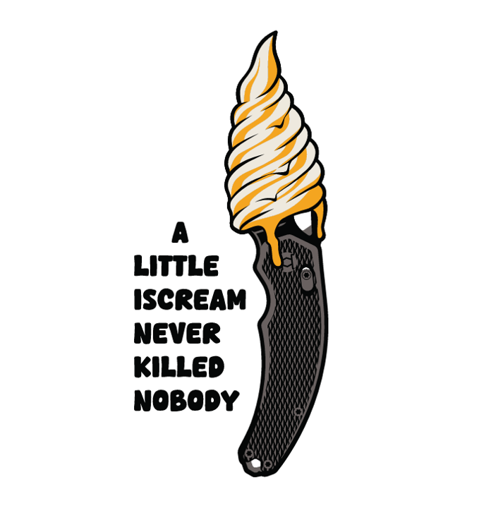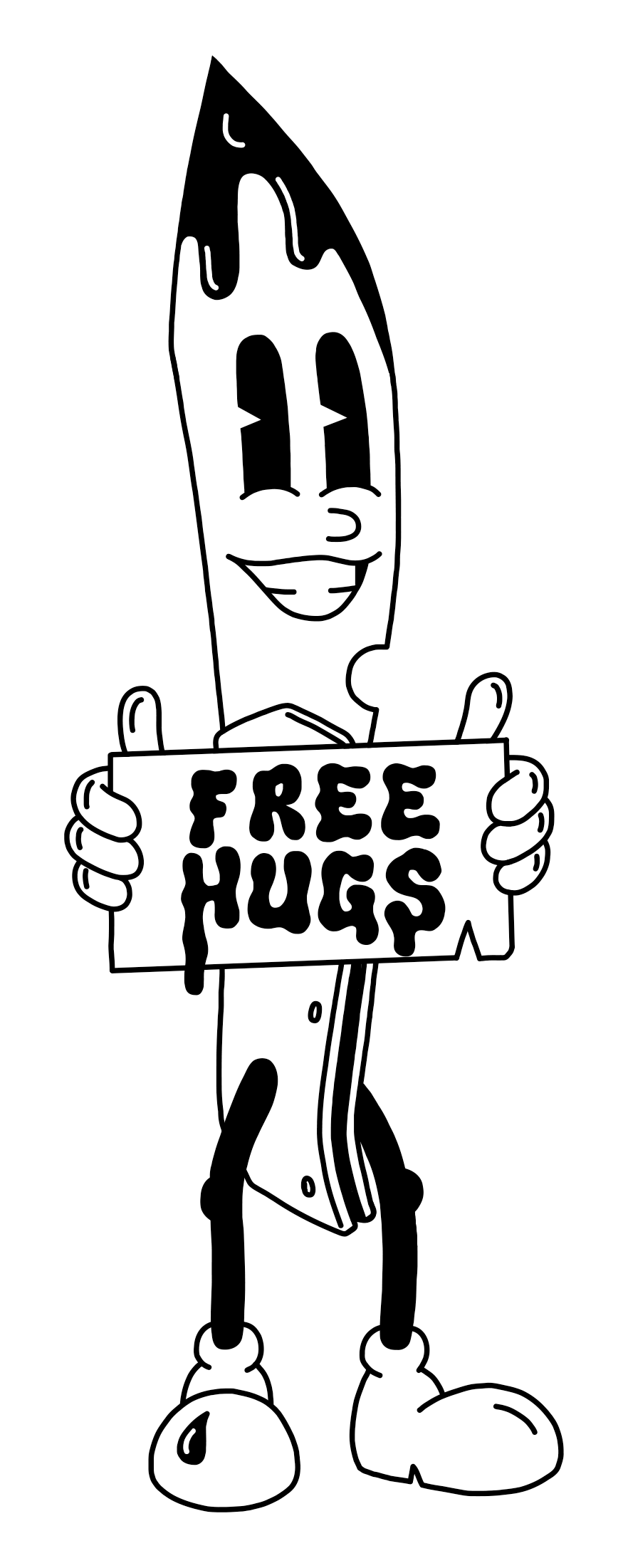 In meinem persönlichen Leben ist Humor buchstäblich ein Überlebenswerkzeug, und er fließt auf natürliche Weise auch in meine Arbeit ein. Ich bin dankbar, mit Menschen zusammenzuarbeiten, bei denen es nie an Humor, Parodie, Mut und Authentizität fehlt – und mit einer Prise Bizarrheit oder Wahnsinn. Dadurch gibt es fast unendlich viele Ideen – und das Gefühl, das eigene Design auf einem Messer oder einem anderen Objekt zu sehen, ist unbezahlbar.