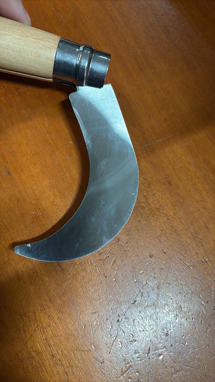 Das Opinel VRI-Schneidemesser hat eine gebogene, glatt geschliffene Klinge aus rostfreiem Sandvik 12C27-Stahl und eignet sich zum Ernten und Schneiden. Er wird durch einen Drehring gesichert - patentierte Virobloc-Sicherheit. Der Griff ist aus naturlackiertem Buchenholz gefertigt.
