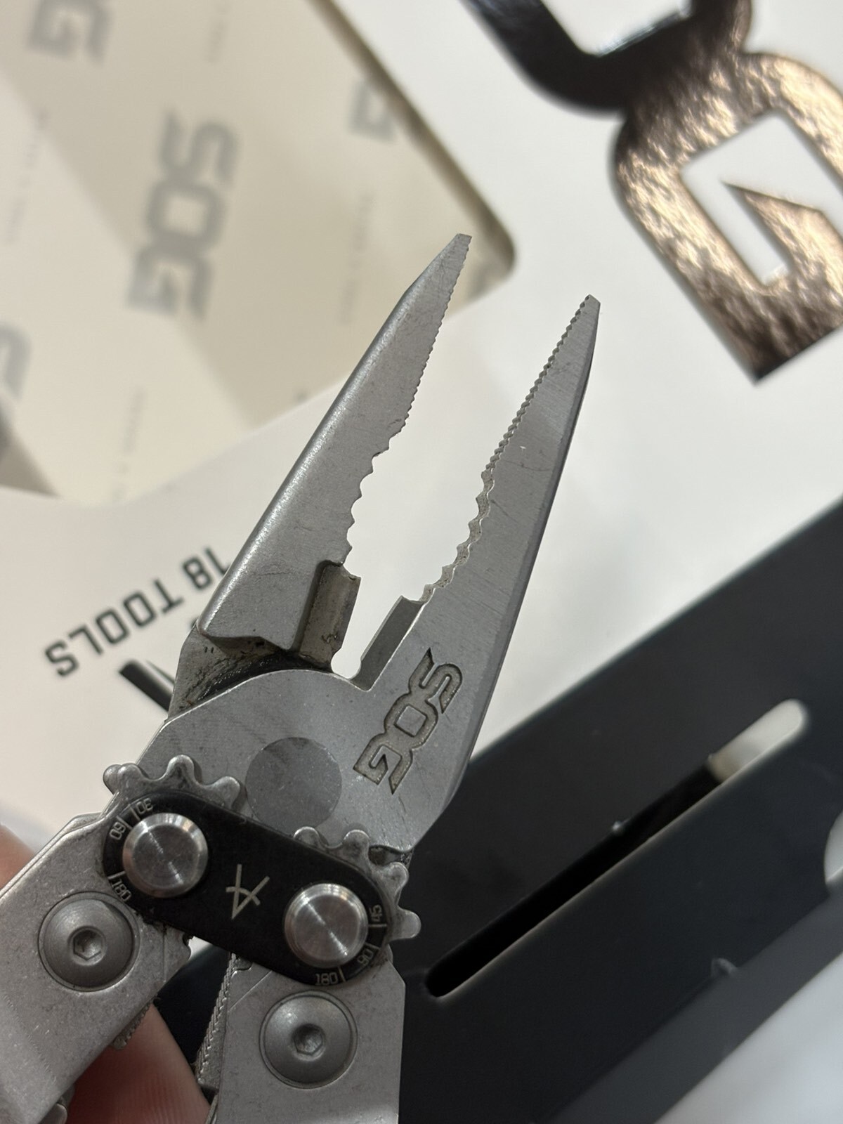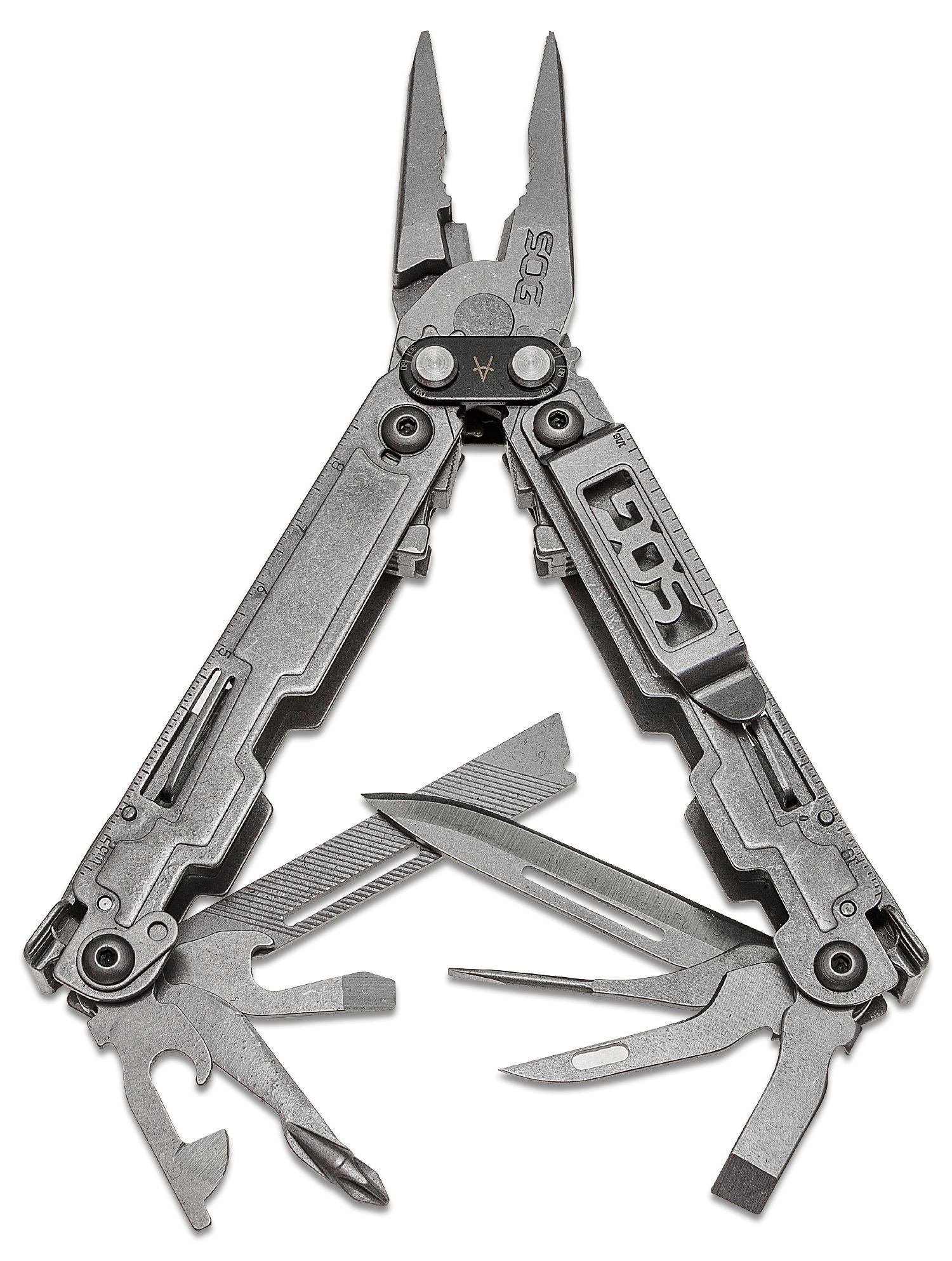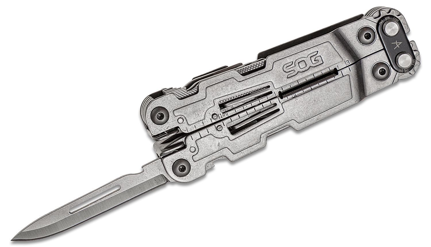 Das kompakte und effiziente SOG PowerAccess Multitool ist das ultimative EDC-Accessoire. Mit dem patentierten Compound Leverage Mechanismus verdoppelt der PowerAccess den Backendruck und reduziert gleichzeitig die Gefahr des Herausrutschens von Schrauben und Muttern. Komponenten, die sich nach außen öffnen, sind auch bei geschlossenen Griffen leicht zugänglich. In der geöffneten Position werden die Werkzeuge durch einen zuverlässigen Verriegelungsmechanismus gehalten. In der geschlossenen Position bietet der PowerAccess einen magnetischen Sechskantbithalter, der mit allen gängigen ¼-Zoll-Sechskantbits kompatibel ist.