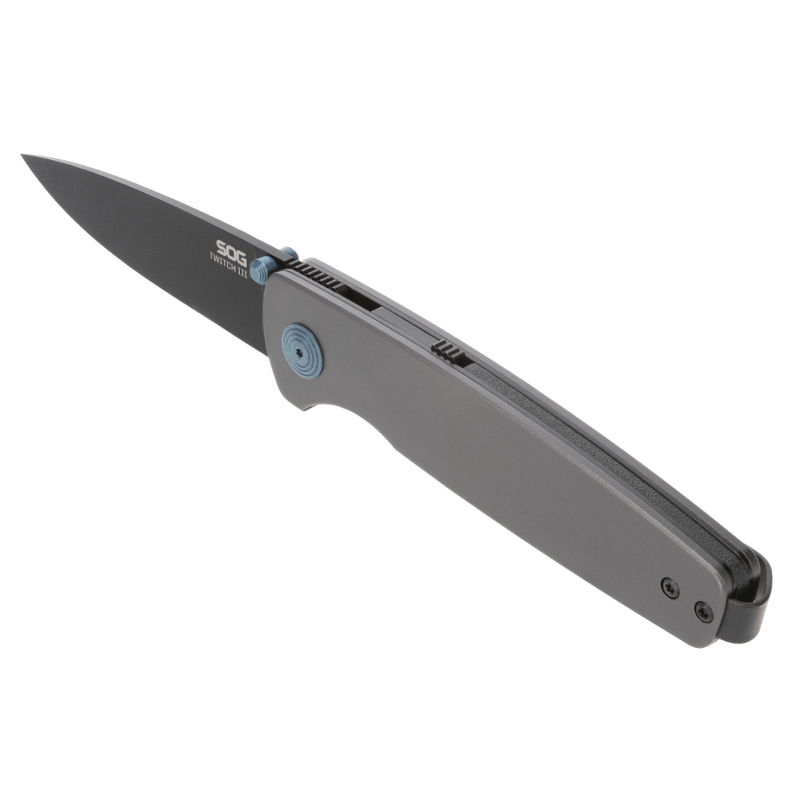 Das Klappmesser Twitch III hebt die beliebte Serie Twitch auf ein neues Niveau, indem es modernste Technologie und verbesserte Materialien mit einem praktischen kompakten Design kombiniert. Der Stahl der Klinge wurde geändert, wodurch sich ihre Eigenschaften verbessert haben, und für den Griff wurden Aluminium-Liner verwendet. Dadurch wurde das Gewicht des Messers etwas reduziert. Ansonsten blieb die Konstruktion nahezu unverändert. Dünn, leicht, beidhändig und lässt sich dank der SOG-Assisted-Opening-Technologie mit einer Hand leicht öffnen.