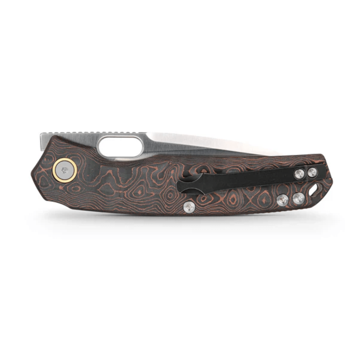 Der Griff aus Uni-Copper Fat Carbon verbindet atemberaubende visuelle Muster mit außergewöhnlicher Stärke-Gewichts-Leistung.