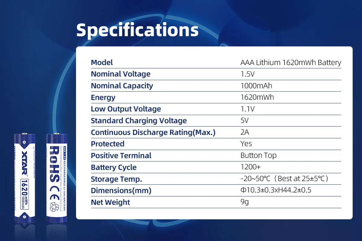 Xtar AAA 1620mWh1000mAh-4 pcs AAA 1.5V 1620MWH Battery (box+battery case)