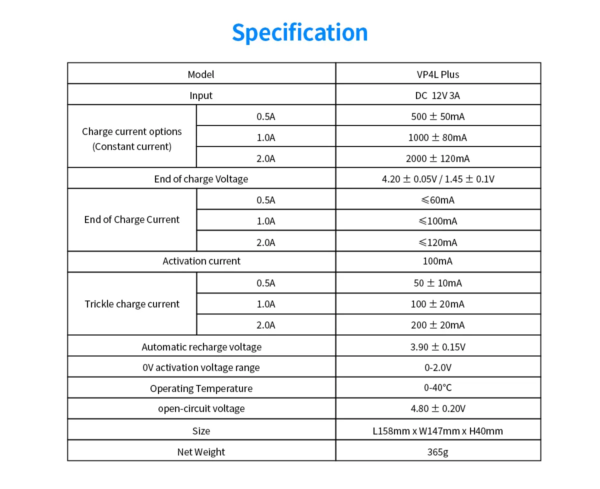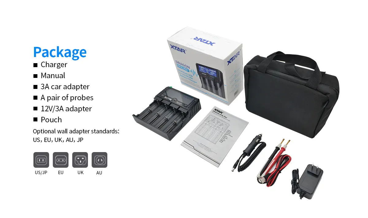 Xtar DRAGON VP4L Plus-charger, wall adaptor, car adaptor