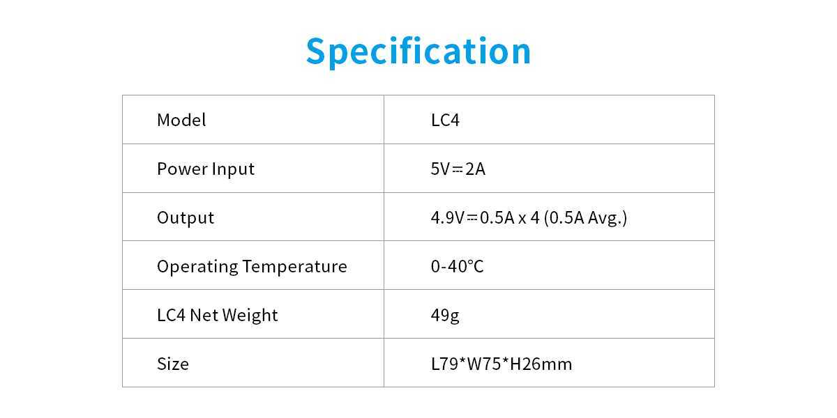 Xtar LC4-Type-C 1.5V Li-ion AA/AAA battery charger, 1*A-C cable